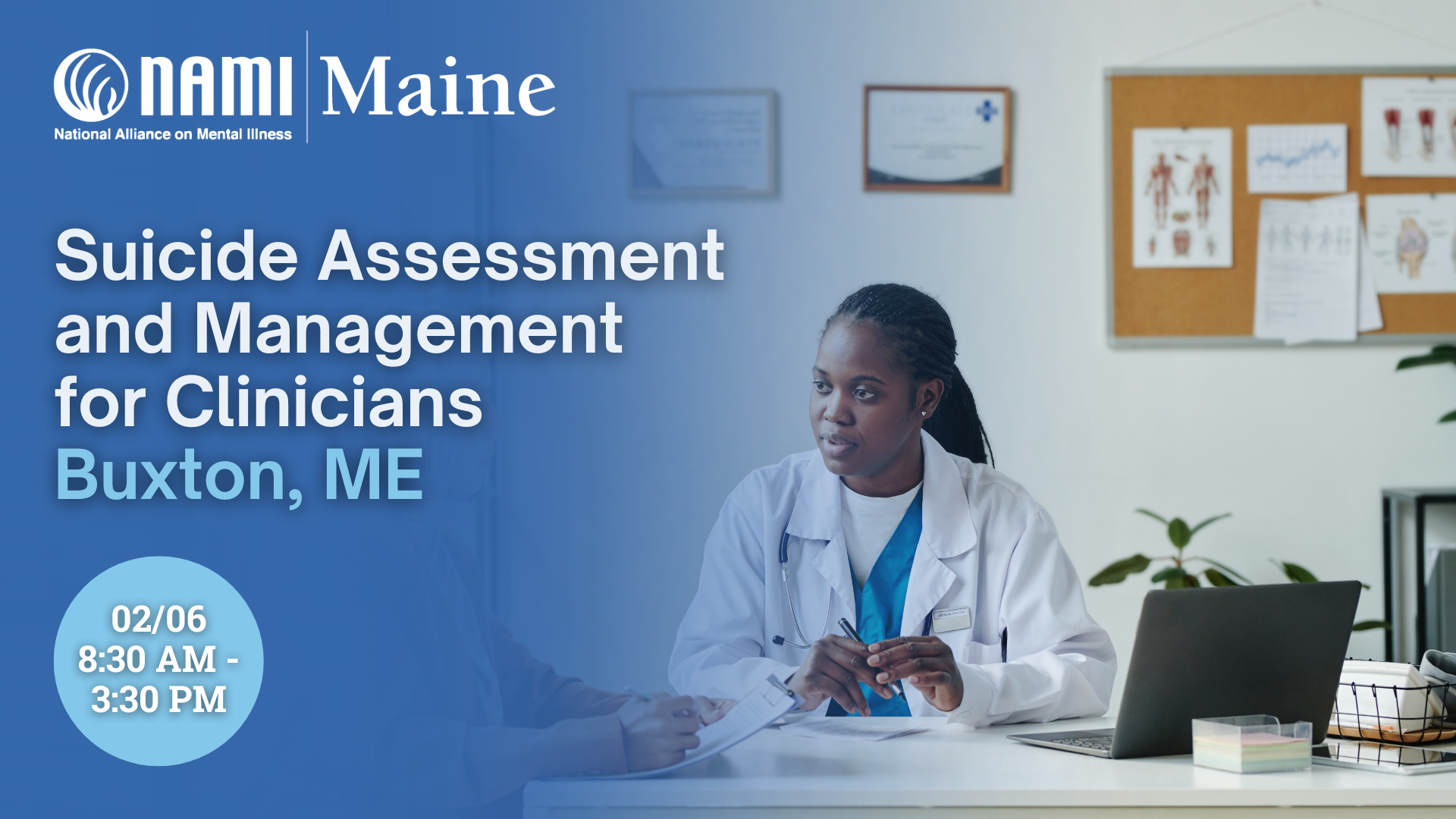 NAMI Maine’s upcoming Suicide Assessment and Management for Clinicians Training will be held on February 6, 2026, from 8:30 AM to 3:30 PM at the Maine School Administrative District #6...